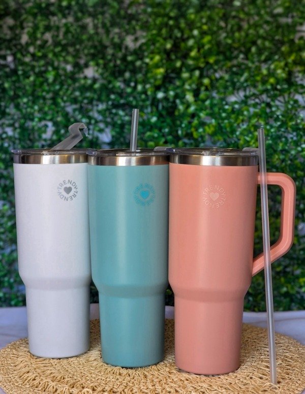 🥤 Vaso Térmico Trendy 1200 ml con Tapa y Sorbete – Doble Capa Acero 304, A Prueba de Fugas